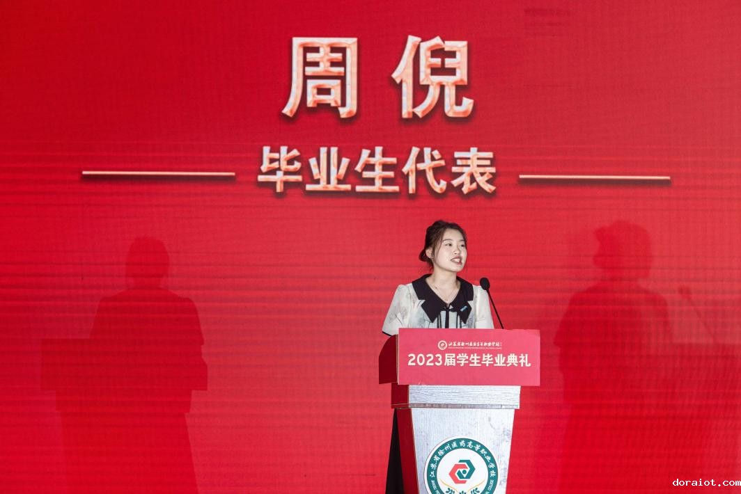 2018级高职药学1班周倪同学作为毕业生代表发表了毕业感言,她感谢学校和老师们这五年来的悉心教导和精心栽培,并代表2023届全体毕业生表示一定会牢记“厚德博学、强能济世”的校训,做一个拥有责任并勇挑重担的人,立志服务社会、报效祖国。