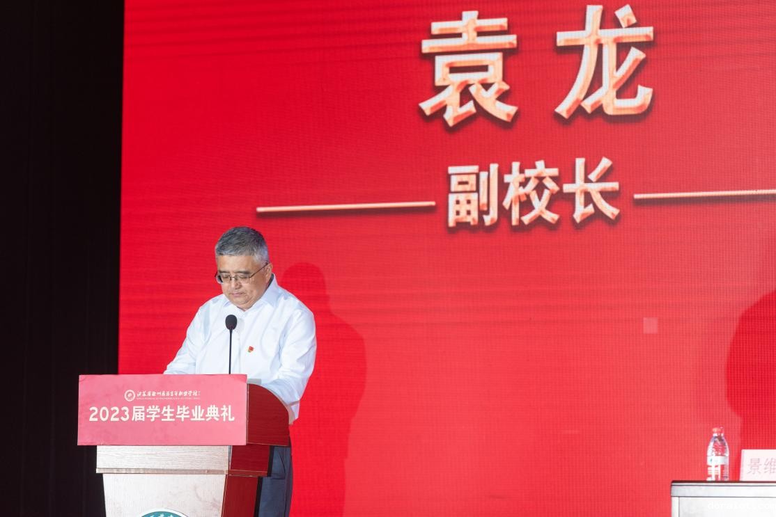 随后,由袁龙副校长宣读荣获国家奖学金、国家励志奖学金、2023年江苏省“三好学生”“优秀学生干部”、联院“优秀毕业生”学生名单并进行了颁奖;陈志东副校长宣读2023年优秀毕业生表彰决定并进行了颁奖;佟光进副校长宣读2023届毕业生校友工作联络员聘任决定并举行了校友联络员受聘仪式;校党委高侠书记宣读2023届毕业生毕业决定并为毕业生代表颁发了毕业证书。