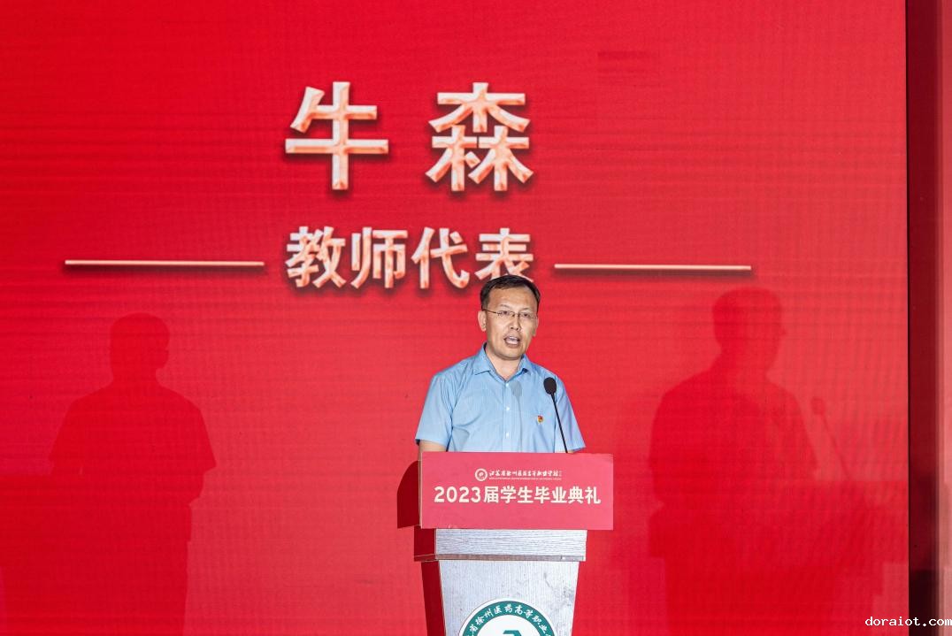 教师代表牛森老师为毕业生们送上祝福,他殷切勉励2023届毕业生步入社会后,要通过辛勤劳动创造财富,实现自我价值,并结合校训赋诗一首送给全体毕业生。